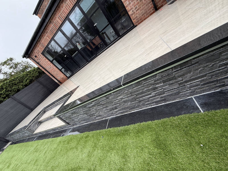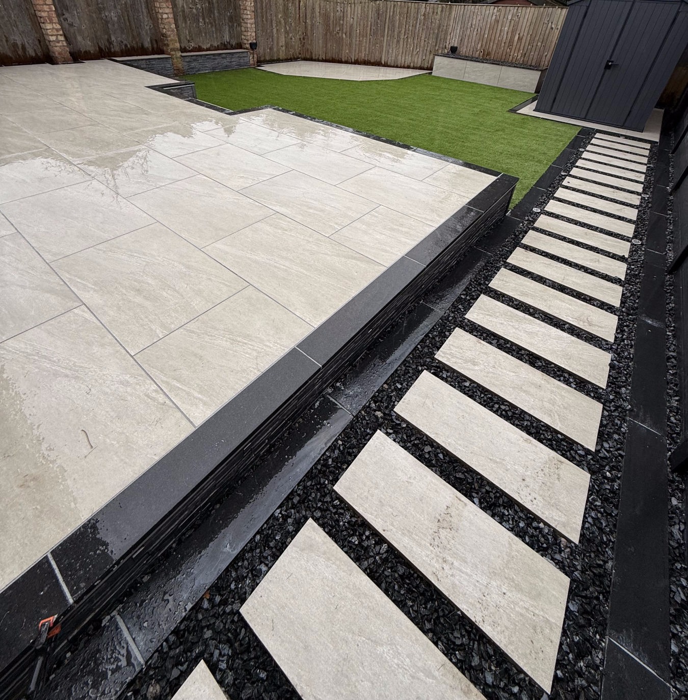A friend recommended paving the way and Lisa got back to me straight away. The lads who did the job Karl, Ellis and Carl worked in very hot conditions. I don't know how the lads managed to cover my existing wall with tiles as there are two bends each side and also the floor tiles. I'm amazed at how good their work is. My garden is now maintenance free and I can't wait for next summer.